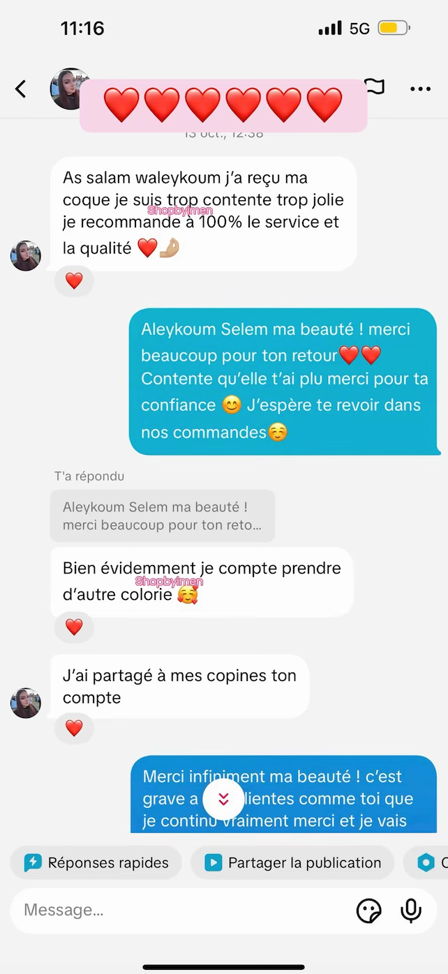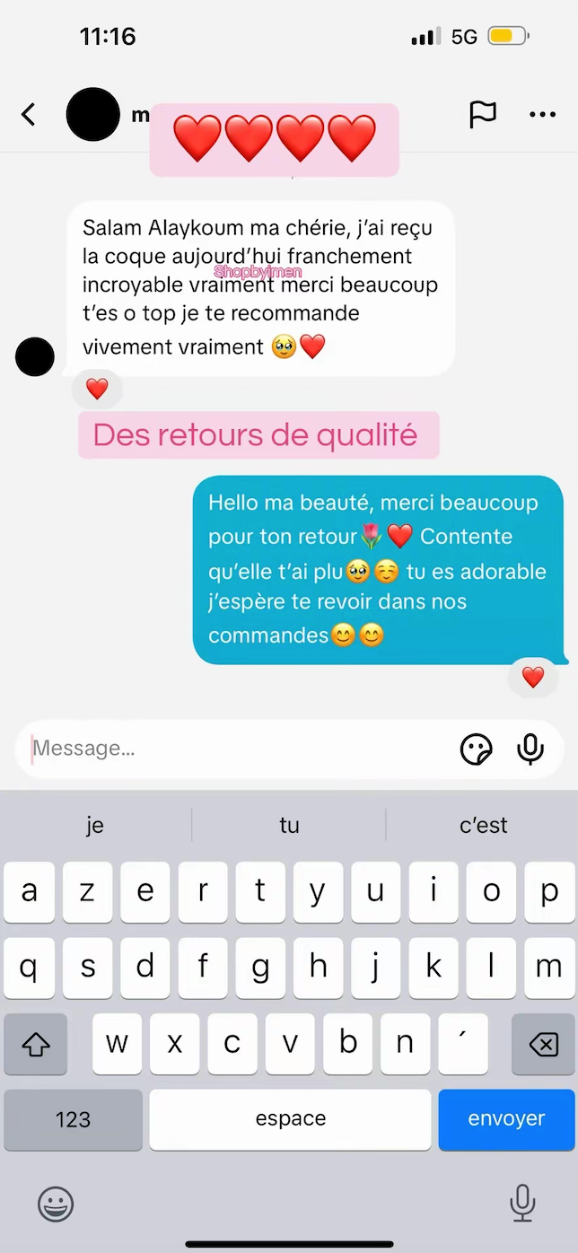 Pour joindre le service client il suffit juste de nous envoyer un mail à shopbyimen@gmail.com