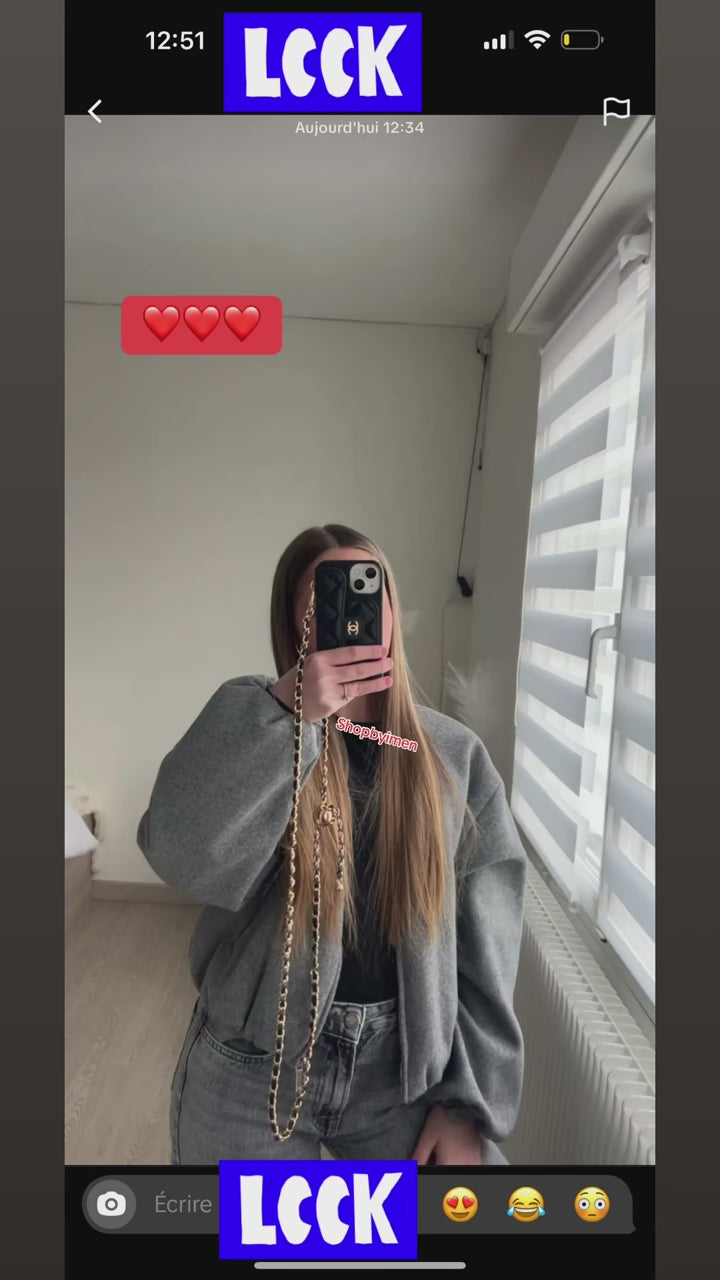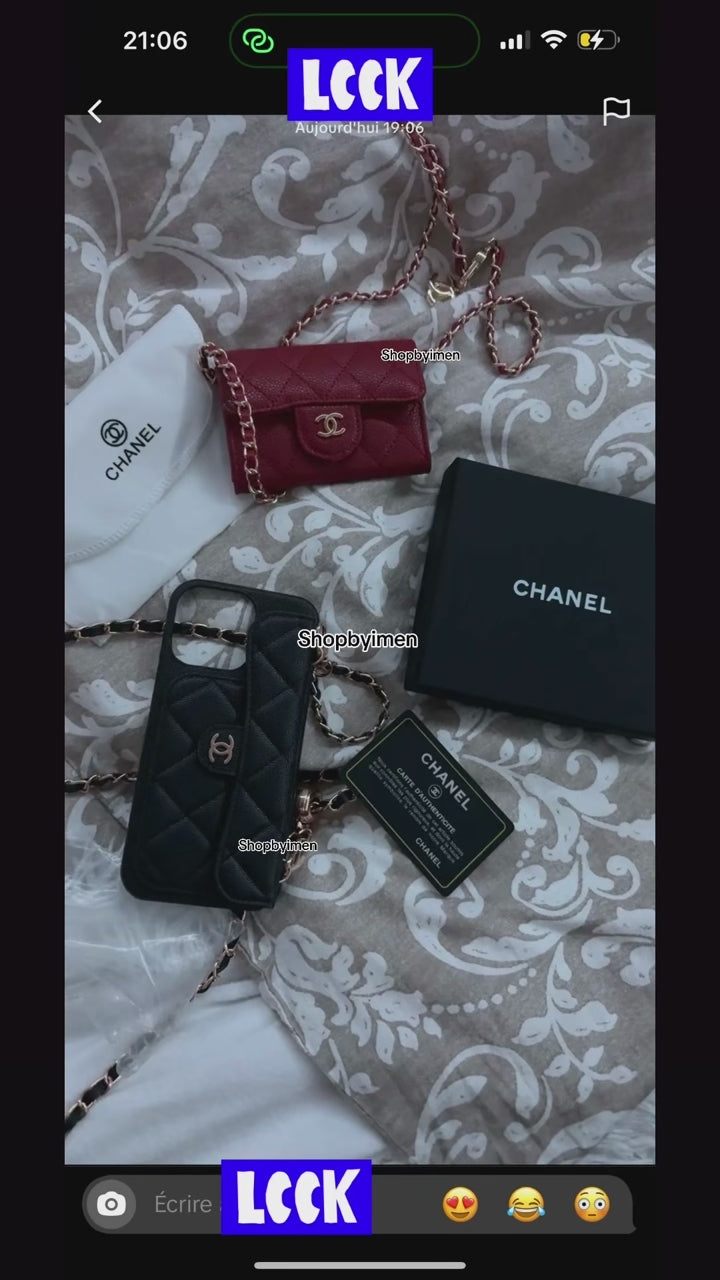 Apporte une touche de luxe à ton téléphone avec cette coque iPhone façon mini sac matelassé. Coque en cuir avec une chaîne dorée entrelacée, et le logo CC iconique pour un style chic et tendance.