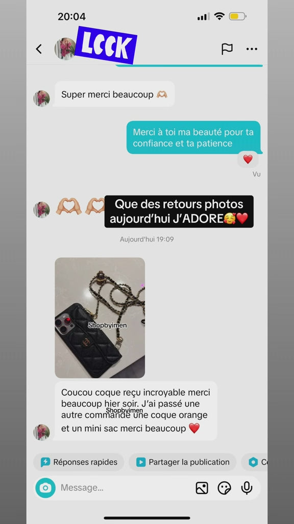 La coque de votre choix + 1 lanière longue, attachable à la coque, gravée CC et assortie à la couleur de la coque + 1 logo CC en acier